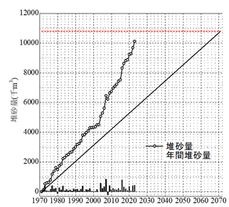 ダムの堆砂の進行は貯水容量の減少や取水障害を引き起こすだけでなく、貯水量の低下によって、災害時に十分な氾濫防止機能を果たせなくなるリスクが発生します。特に近年のゲリラ豪雨による災害発生などに備えるためにこの対策は急務と言えます。