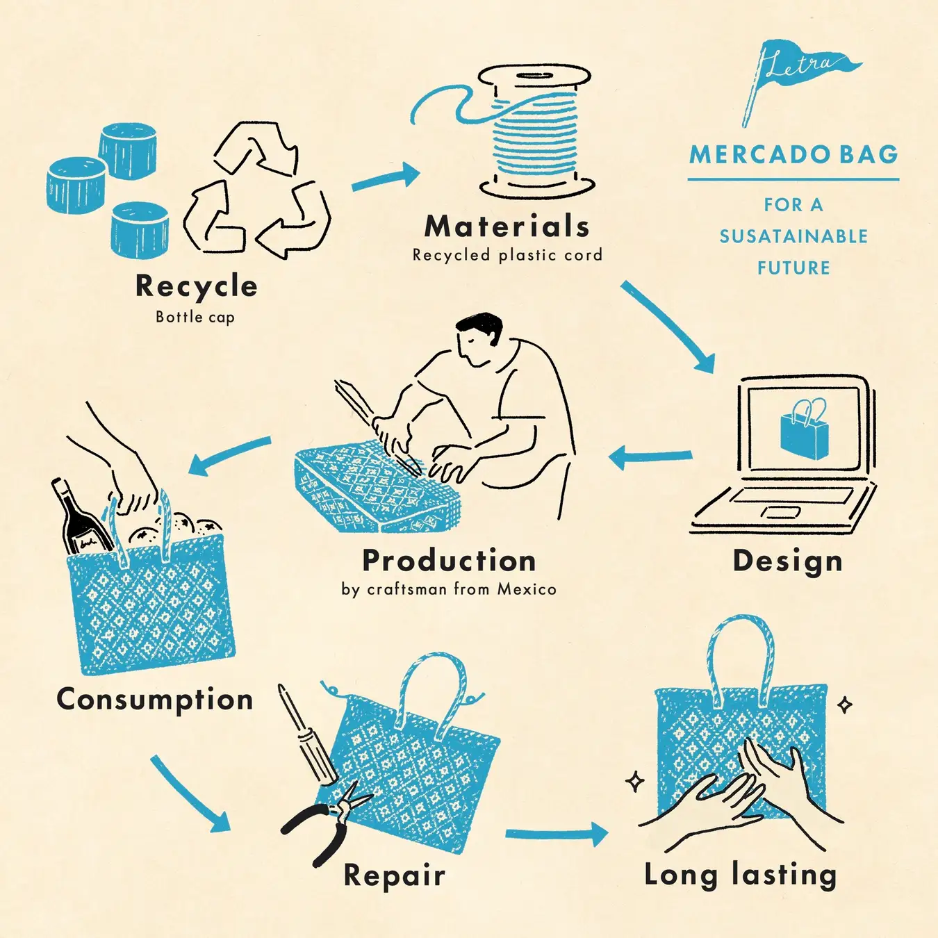 同社は、10年使用できるメルカドバッグで環境配慮だけでなく長くひとつのものを使い続けるサステナブル消費で「サーキュラーエコノミー(循環型経済)」の形を見出すのもひとつの環境保護の形だと考えているのだそう。