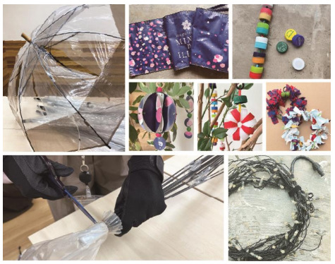 地域の住民や企業、学校が協力し、壊れたビニール傘やペットボトルキャップ、間伐材などの廃材を再活用してオーナメントを制作。完成した作品はイルミネーション装飾の一部として、実際の会場を彩ります。