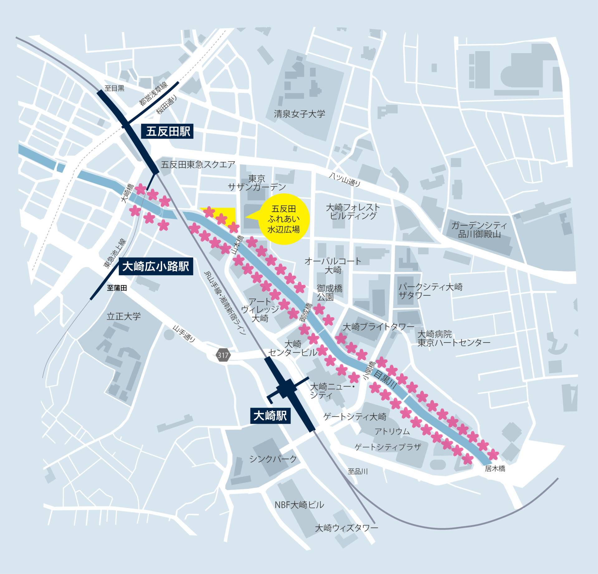 ■会場(住所):品川区立五反田ふれあい水辺広場 (東京都品川区東五反田2-9)、及び目黒川沿道