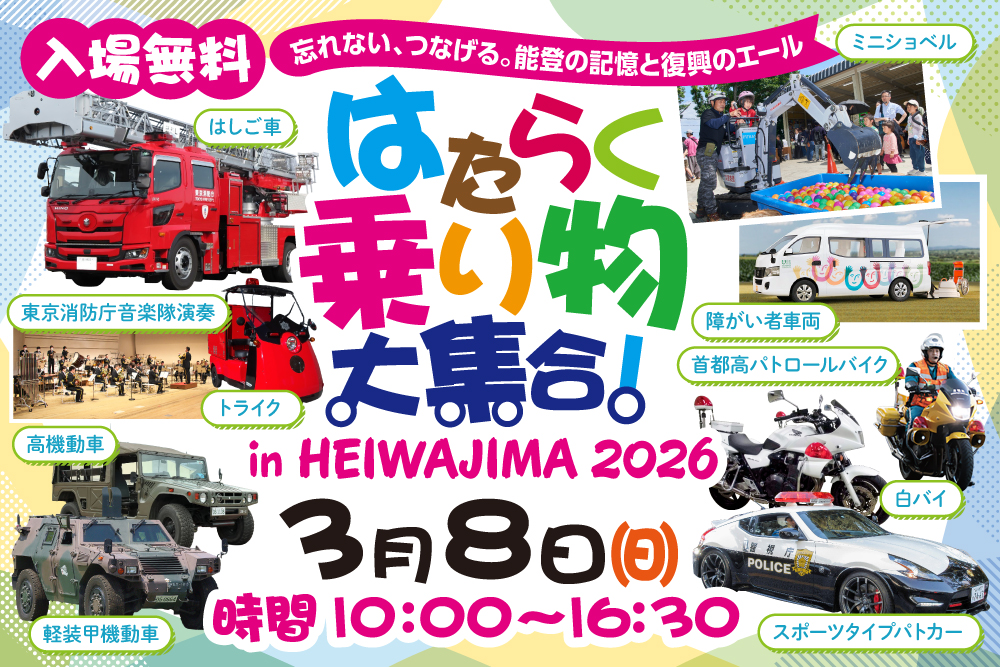 『~忘れない、つなげる。能登の記憶と復興のエール~「はたらく乗り物大集合!in HEIWAJIMA 2026」』